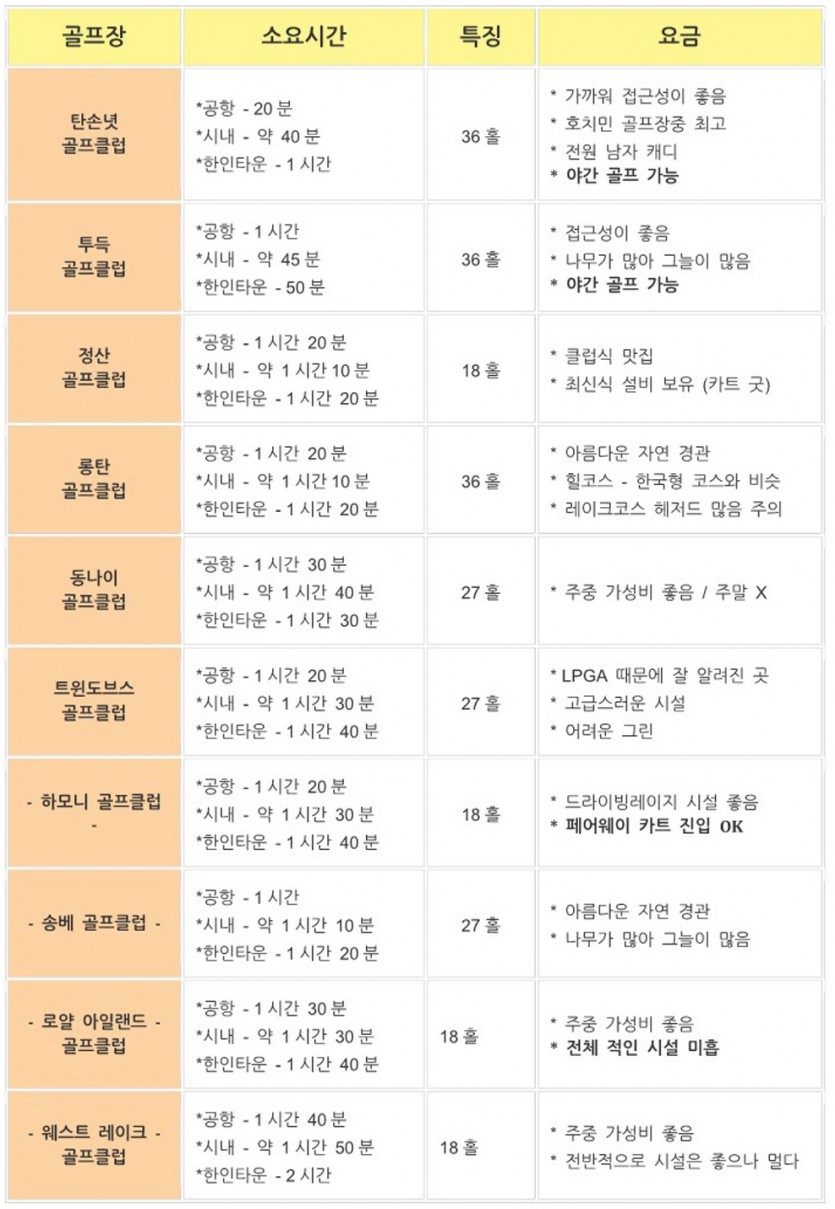 이상으로 호치민 골프장 비교 설명이었습니다.